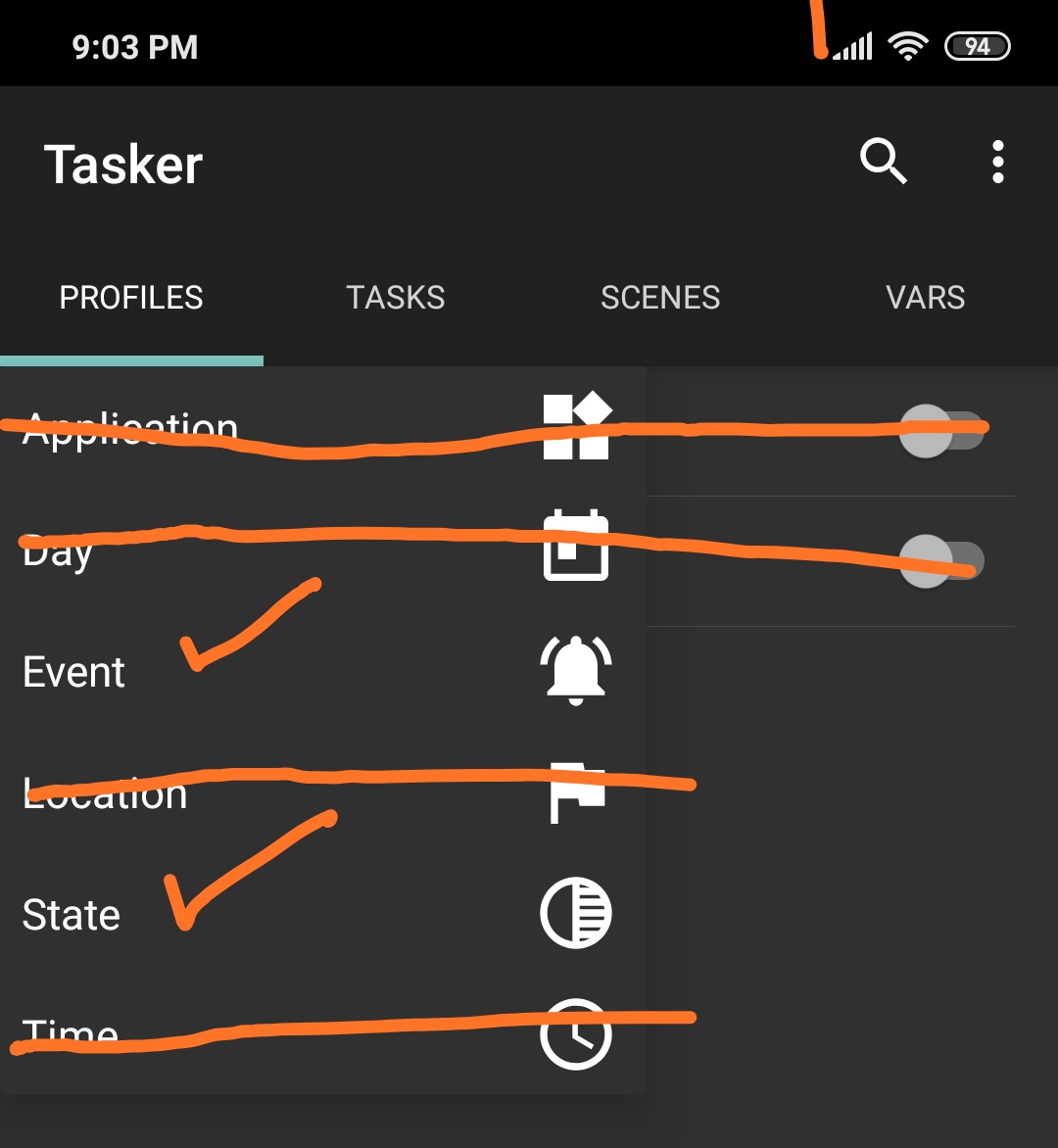 At present we have Application, Day, Event, Location, Time, State context. And that's way old thing when tasker was built.