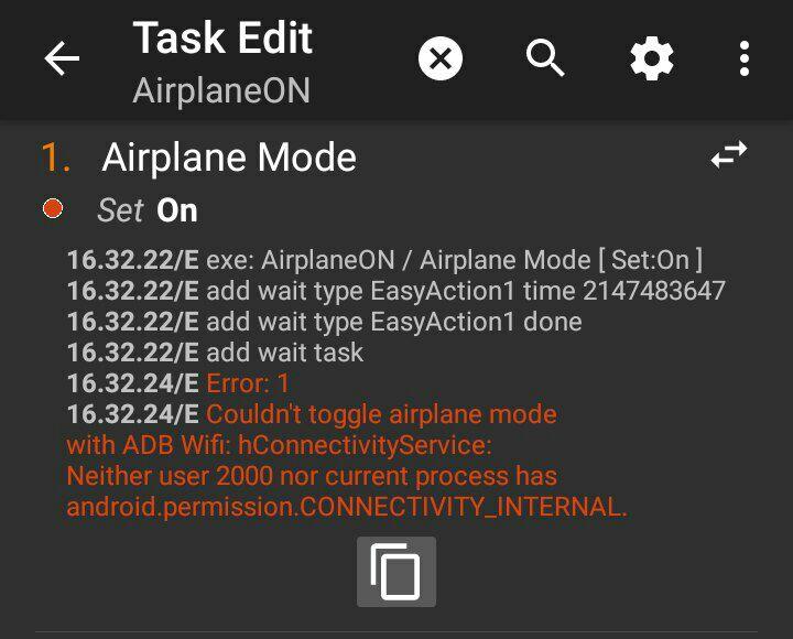 But when I try to launch my EnableAirplaneMode action, i have the following error: