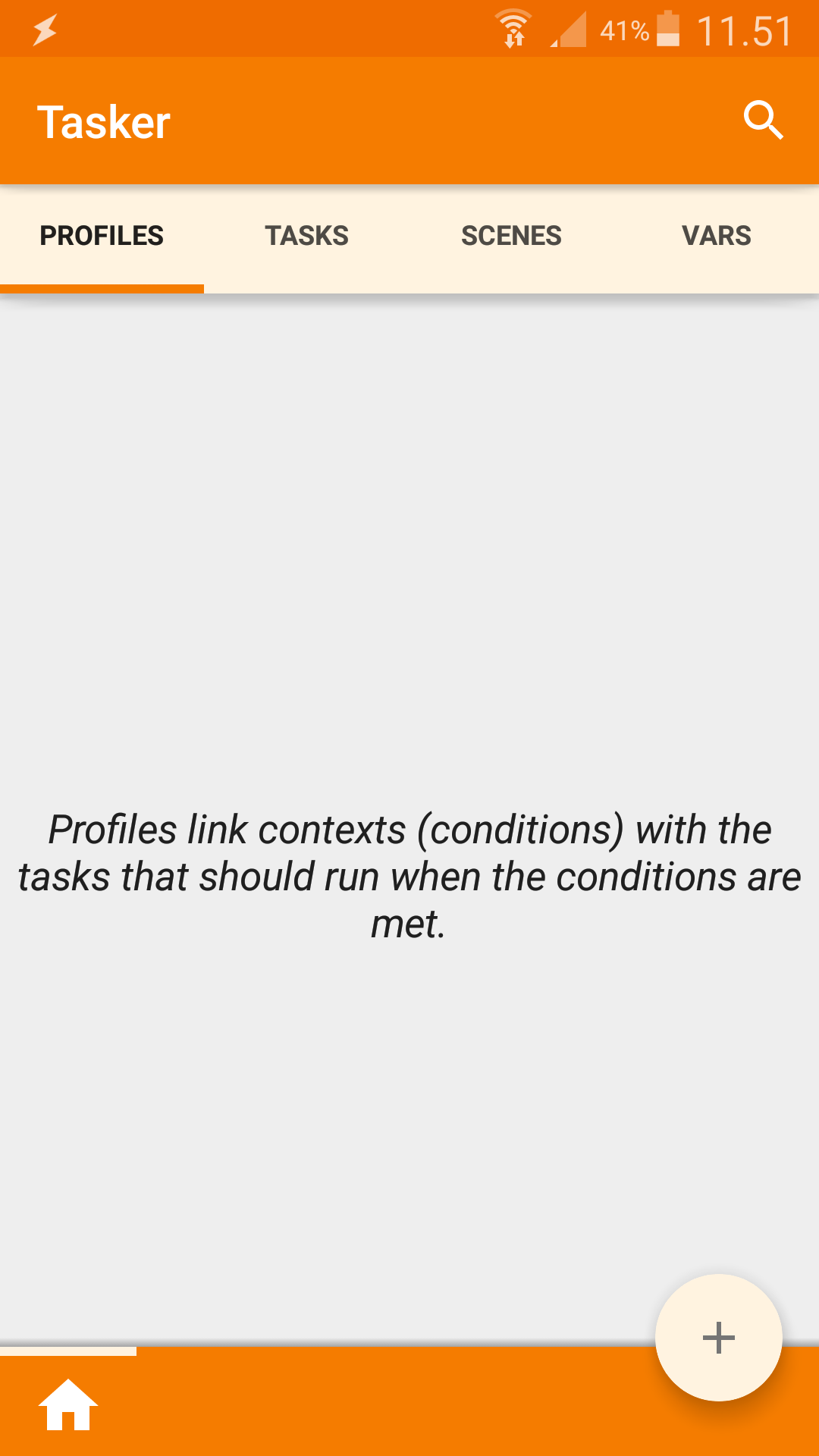 I have two identical Samsung Galaxy S4, SM-GT1906, phones running Android 5.0.1 and Tasker application. Both Tasker app have the same problem: The three vertical dots at upper right corner are missing. See attachment.