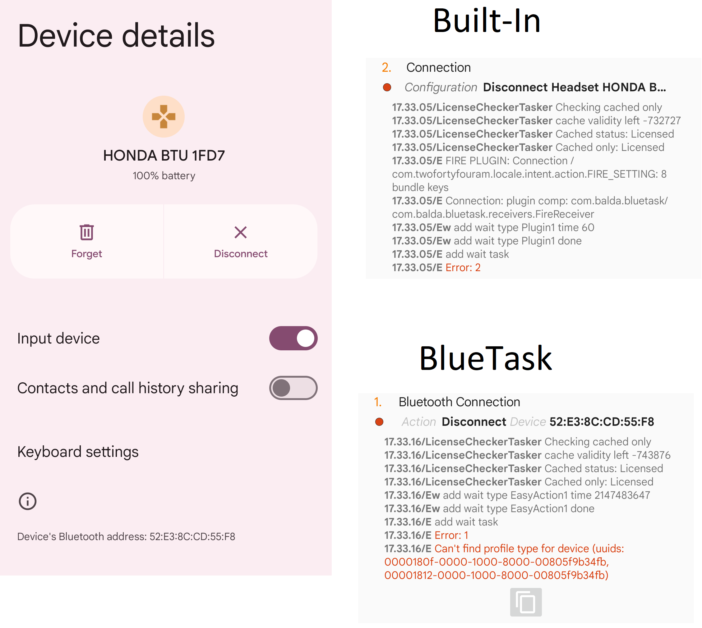 I tried both using the built-in task (Action > Bluetooth Connection > Disconnect) and the BlueTask plugin.