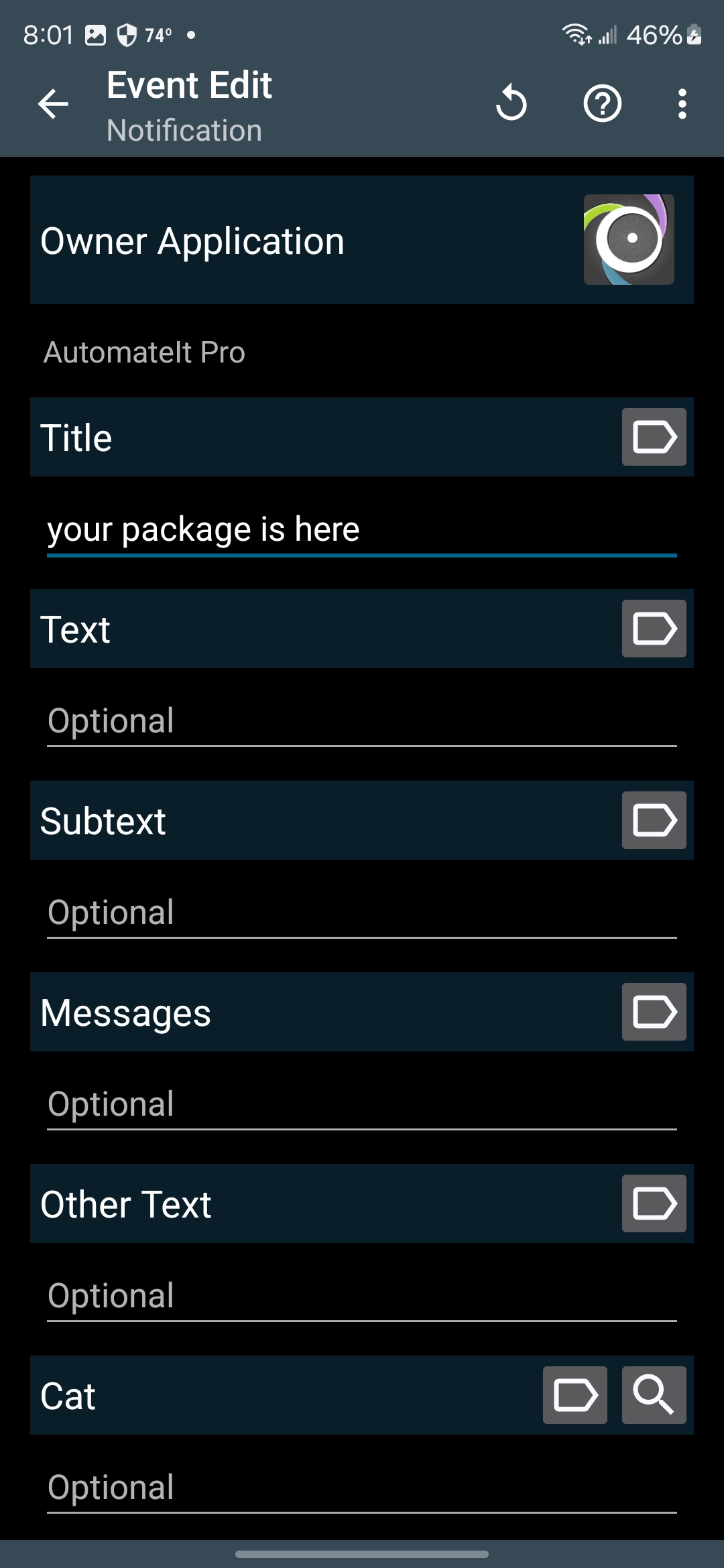 However, this profile is not functioning as expected. I'm using the app automateit to send custom notifications on command to test if the profile is working properly, but the profile fails to recognize the notification.