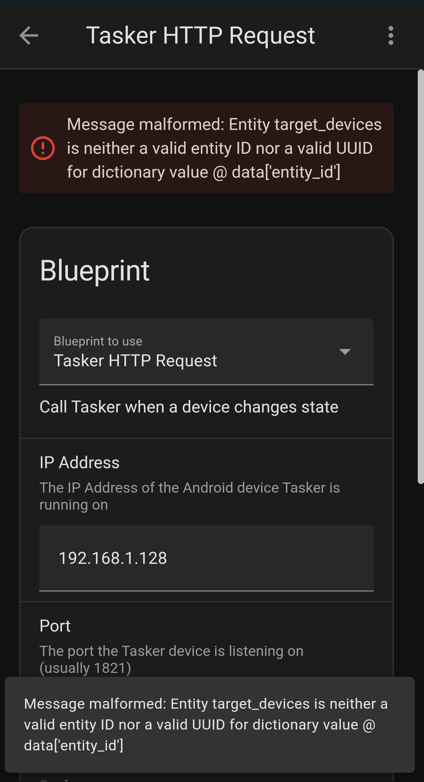 After following the directions here I get the following error message in Home Assistant when setting up a Tasker HTTP request blueprint: