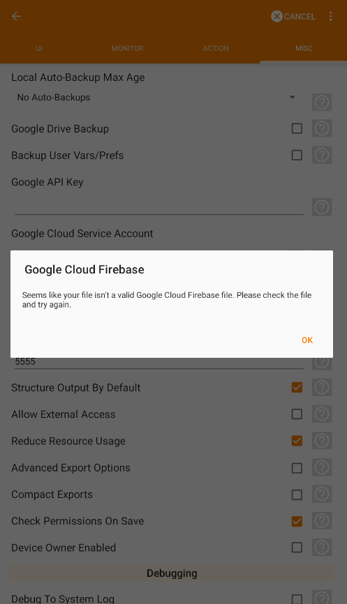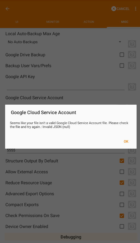 I want to report the remote execution problem. I couldn't import neither Google Cloud Service Account nor Google Cloud Firebase JSON files in Preference > Misc configuration as per step 3 from here. I have imported the JSON files using magnifying glass and copy-paste it directly to the corresponding input field, but it keeps showing error something like "Invalid JSON file, null" even though the JSON files of mine are not error and formatted correctly (you could see this post attachments for the evidence).