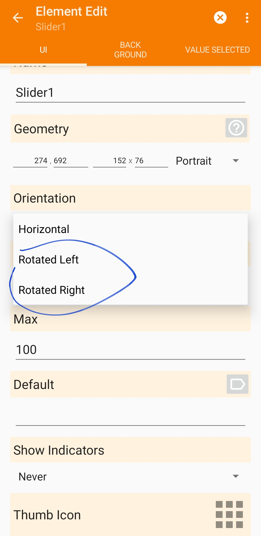 - There is no obvious way to make a vertical slider.