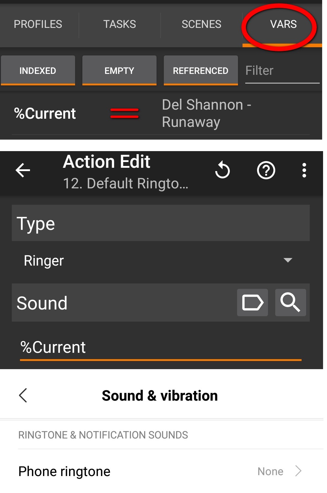 So I can not use %var (random ringtone)